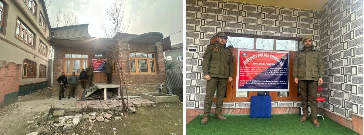 According to the statement issued, Police Post Qamarwari under Police Station Parimpora served notices for freezing/attachment of one double-storey and one single-storey residential house linked with the accused Suhail Ahmad Mir, S/o Gulzar Ahmad Mir, R/o Barthana, Qamarwari, involved in FIR No. 64/2025 U/S 8/22 NDPS Act of Police Station Parimpora. The approximate value of the attached residential structures is above Rs 01 crore.
