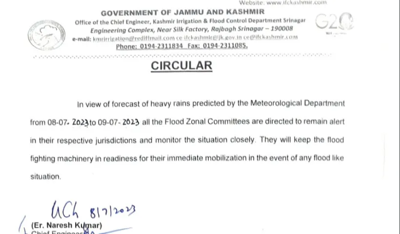 Amid incessant rains in Kashmir plains since last few days, the Irrigation and Flood Control (I&FC) Department Wednesday said that there is no flood threat…