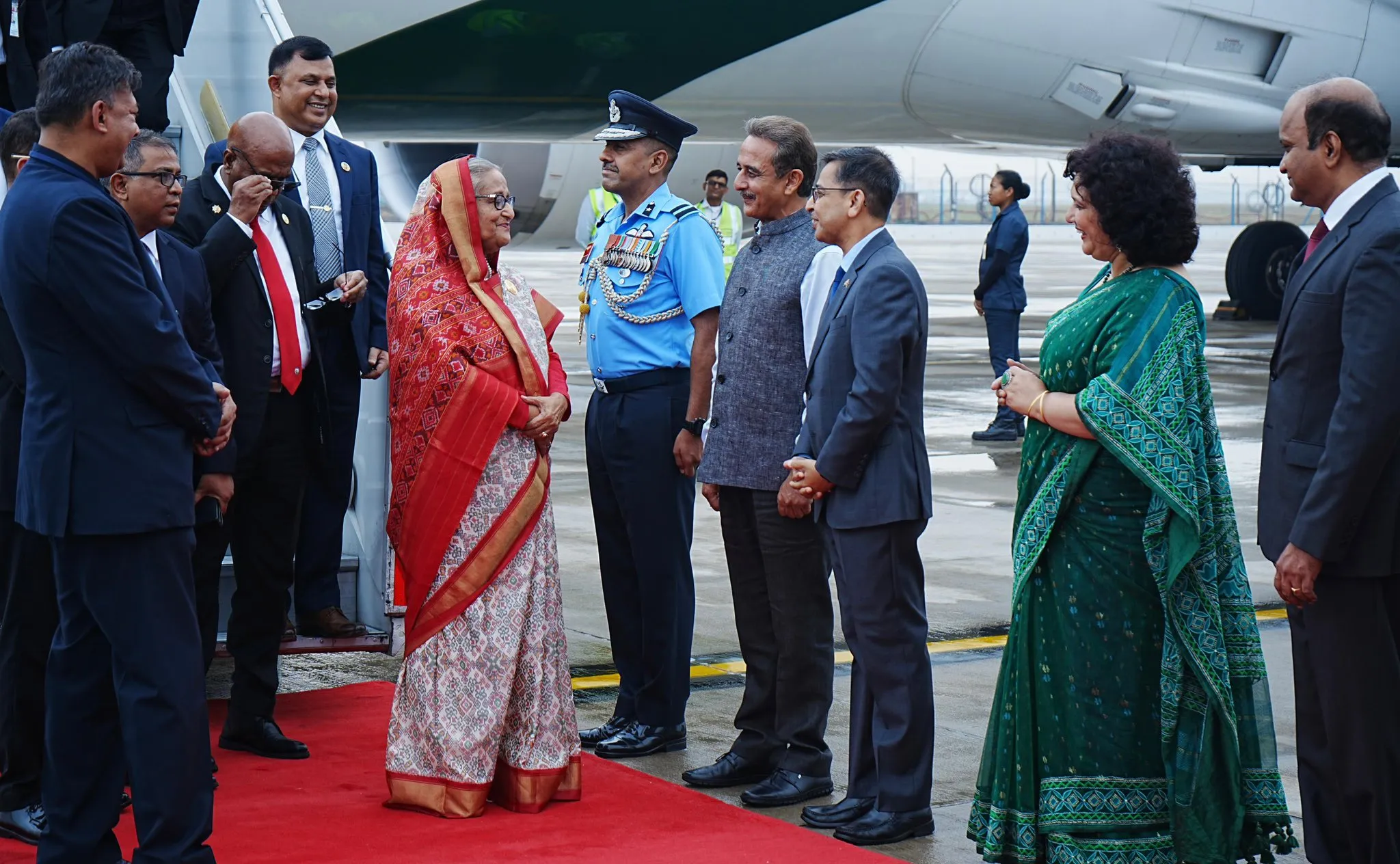 New Delhi, June 21, 2024: Bangladesh Prime Minister Sheikh Hasina arrives in New Delhi for an official two-day State visit on June 21-22, 2024. She was warmly received and welcomed by Minister of State for External Affairs, Kirti Vardhan Singhย at the airport