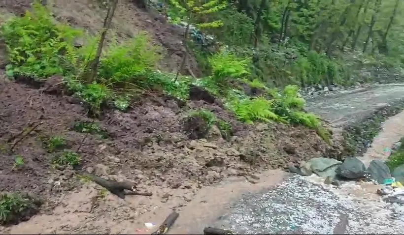 The landslide, officials said, took place on Friday morning hours. Amid heavy rainfall, they said, huge debris of land alongwith stones and mud slipped on road blocking it for traffic