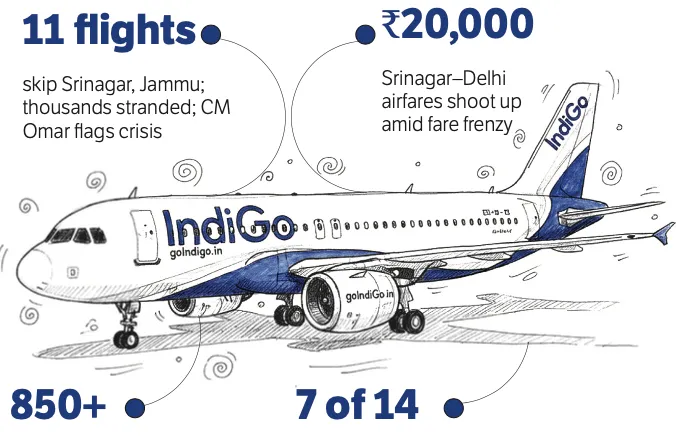 The second day of mass cancellations battered air travel in Jammu and Kashmir, leaving thousands of passengers stranded, terminals congested, fares skyrocketing, and the government demanding answers