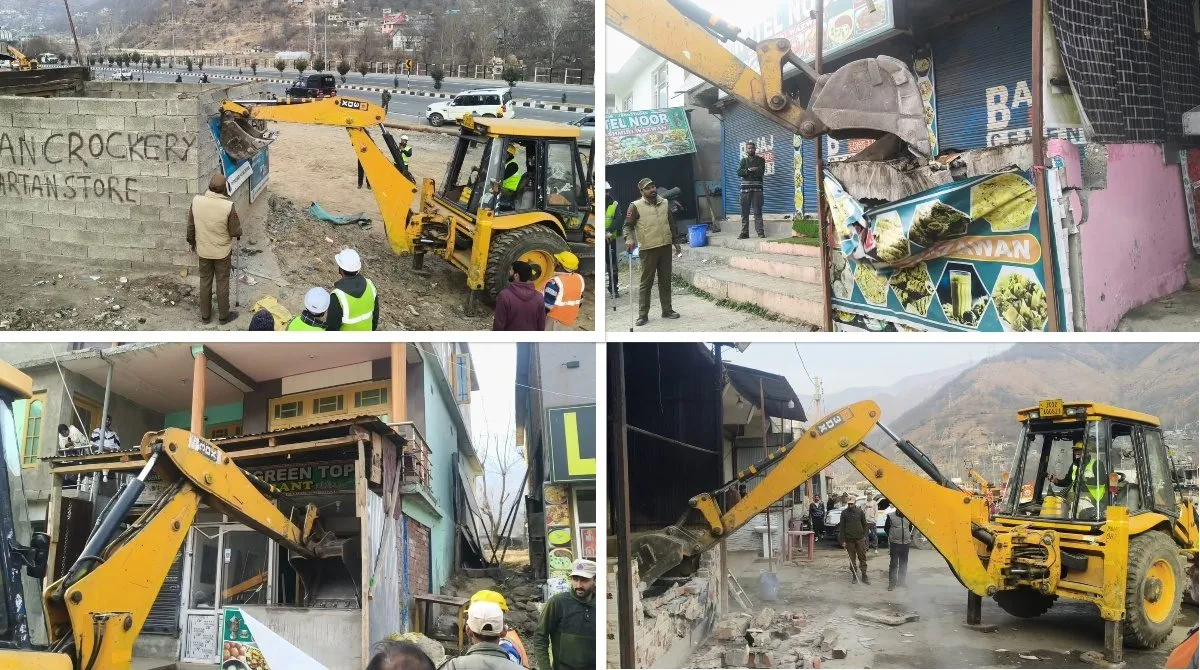 Officials said the demolition is part of a sustained campaign against unauthorized occupations on highway land, initiated after periodic inspections across the Ramban and Udhampur districts.
